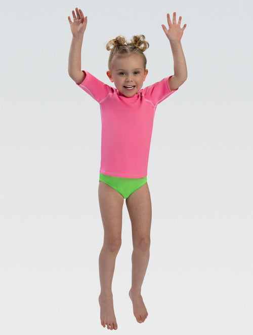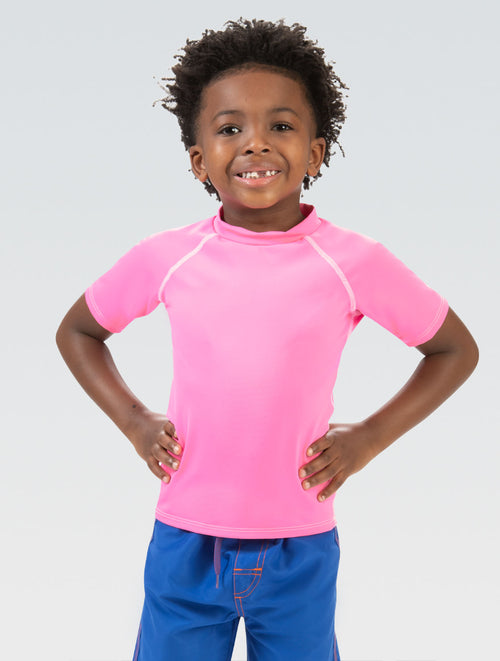 GREAT DETAILS: Their best swim yet, and make it pink! Protect your little one from the sun in style in our rash guard featuring short sleeves, a mockneck for extra coverage, and a 50+ UV protection to help protect your child.