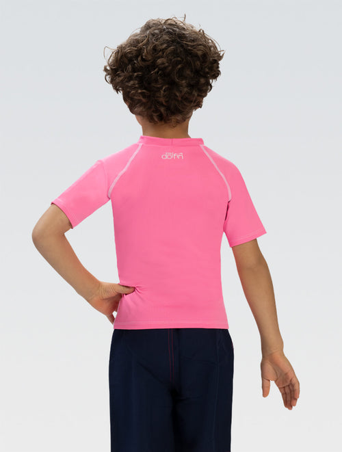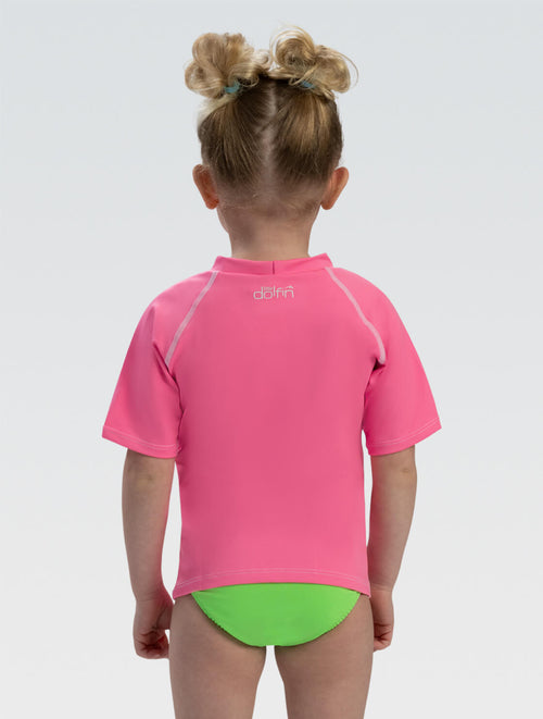 HOME LITTLE DOLFIN UNISEX SOLID PINK SHORT SLEEVE RASH GUARD