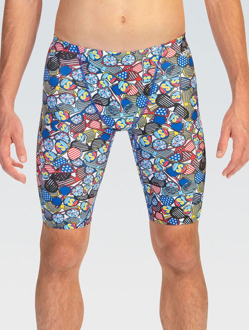United We Shade is a unique and limited-edition print that you will want to scoop up! Featured on this Uglies jammer swimsuit for men, this training suit is colorful, fun, and exactly what your summertime practice needs.