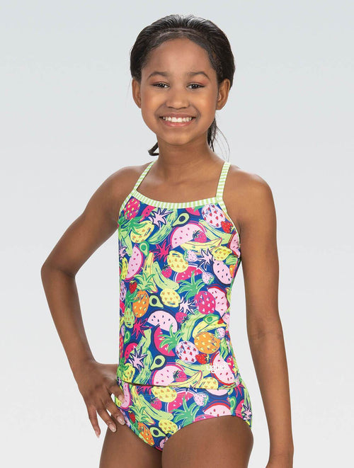 Limited Availability, get it while it lasts!Some people bring orange slices for after practice, but you bring the whole fruit salad! Get ready to rock it at practice in this girls training swimsuit tankini! Cute, fun and functional, this tankini is sure to bring you some smiles!